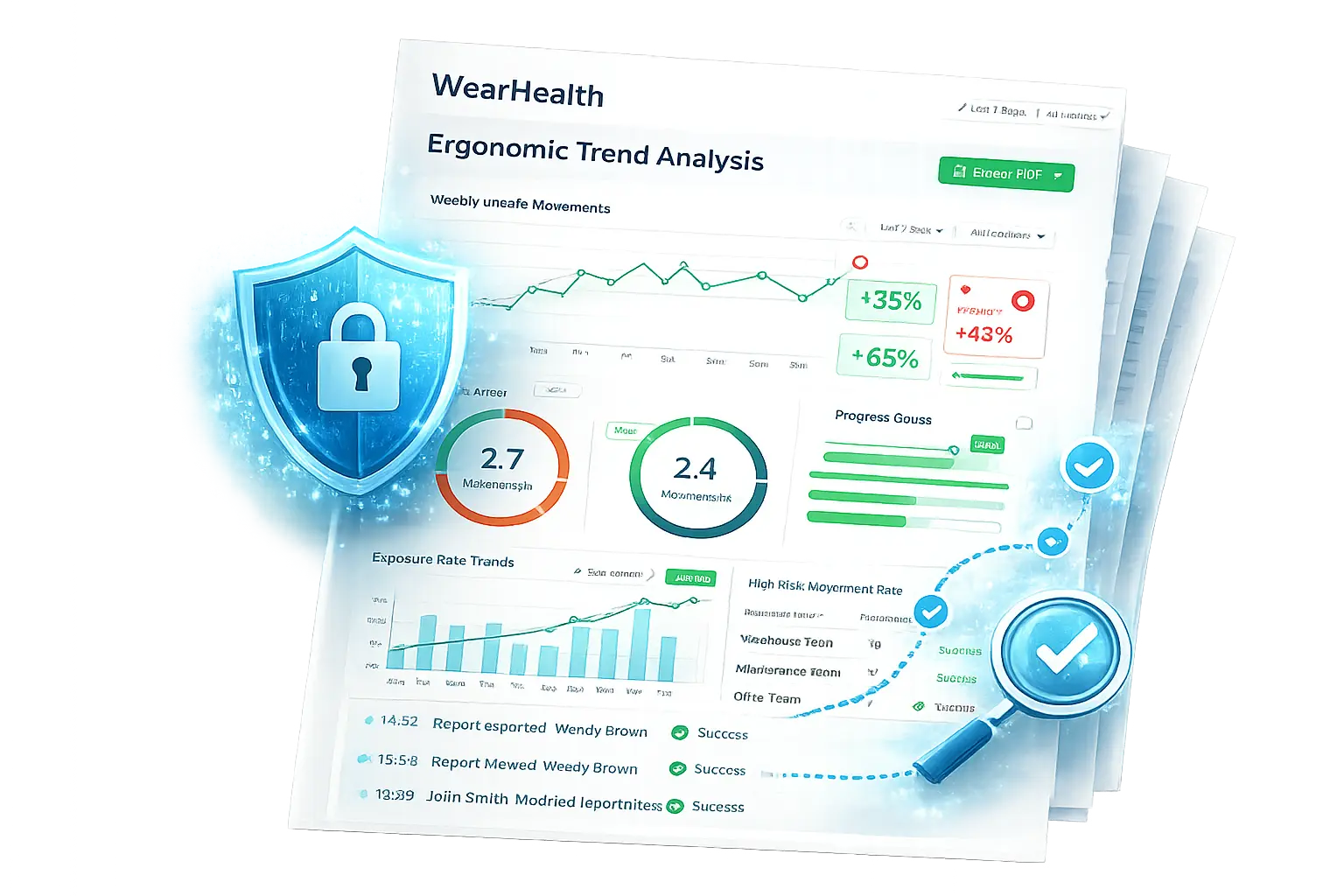 Turn analytics into credible documentation with audit-ready compliance reports. The AI Dashboard enables fast export inspection-ready reports for internal reviews, external audits, and compliance frameworks.